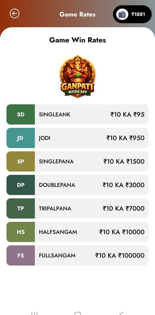 Ganpati Matka is one of the best Matka apps I have used so far. Clean design, instant notifications, and safe transactions.